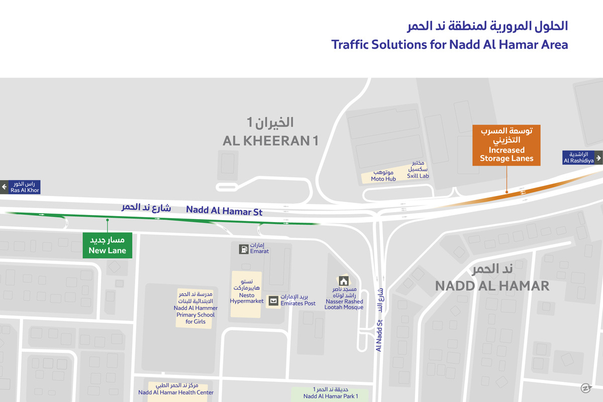 In addition to the new lane, the expansion of the storage lane at the Nad Al Hamar Intersection is anticipated to significantly mitigate queuing issues at this strategic juncture. With increased efficiency in traffic management, vehicles traveling from Al Rebat Street will have improved access to Ras Al Khor Road, essential for those commuting not just to Nad Al Hamar but also to surrounding neighborhoods, including Al Rashidiya and Al Qusais, as well as Dubai International Airport.