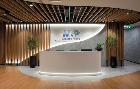 Other noteworthy projects include the office for Müller & Phipps, which artfully marries natural materials with vibrant pops of color in a collaborative open-plan layout, and the Aladdin Cyber Security office, which is marked by sleek circulation paths, monochromatic tones, and modern illumination. Novatek’s office in JLT boldly leans into a stark, brutalist-inspired design that is softened through biophilic details and warm lighting, creating an inviting atmosphere even within its architectural intensity.